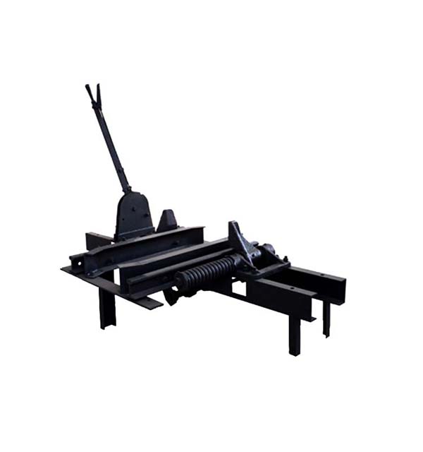 此阻車器為阻輪式阻車器,是礦井車場(chǎng)中將運(yùn)行的礦車停止在某一個(gè)固定點(diǎn)的限位裝置,主要由一對(duì)阻爪和彈簧緩沖裝置等組成。阻爪打開時(shí),礦車可自由通過(guò);阻爪關(guān)閉時(shí)即阻擋住礦車車輪,是礦車停停止前進(jìn)。阻車器可分為單式和復(fù)式兩種。復(fù)式阻車器即兩個(gè)聯(lián)動(dòng)的單式阻車器,相互動(dòng)作閉鎖,除停止礦車外,還起分解礦車的作用。